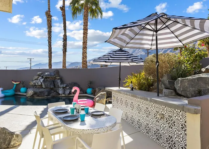Une cuisine équipée met à la disposition des hôtes une variété d'équipements, tels que de la verrerie. Des équipements de cuisine tels qu'un minibar et une cafetière/théière sont fournis pour offrir aux clients une expérience pratique. À 450 mètres, Venezia Italian Restaurant and Pizzeria et les Toucans Tiki Lounge servent une large sélection de repas. L'aéroport de Palm Springs est situé à 10 km, et la gare routière Palm Cyn at Racquet Club est à 200 mètres. La disponibilité d'un jacuzzi et d'une piscine extérieure garantit une expérience plus agréable. Une variété d'équipements, tels que des jouets, divertiront les enfants pendant votre séjour.